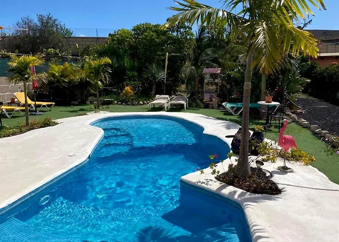 Obiekt oferuje miejsce do jedzenia z urządzeniem do parzenia kawy/herbaty. Goście mogą również skorzystać z czajnika elektrycznego, lodówki i przyborów kuchennych, aby samodzielnie przygotować posiłek. Willa znajduje się około 15 min jazdy samochodem od lotniska Tenerife Sur. Na miejscu do dyspozycji Gości są miejsce na piknik i ogród oraz basen.